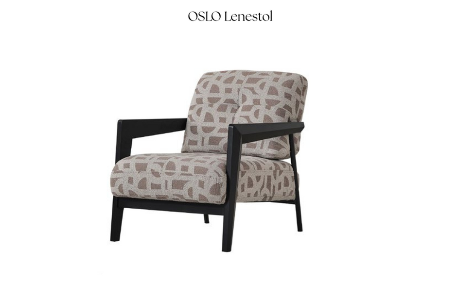 Opplev komfort med en moderne vri i OSLO Lenestol. Det stiliserte treverket og det grafiske tekstilet gir stolen et urbant, men koselig preg. Ideell for moderne hjem og kreative miljøer. En perfekt aksentstol til stue eller kontor.